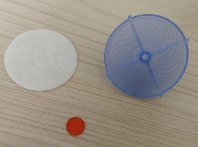 本項(xiàng)目共完成6個(gè)零件的自動(dòng)裝配,其中有2個(gè)注塑件上傘蓋下傘蓋,一PVC片直徑11.5mm厚0.9mm名稱分流片,一直徑40mm無(wú)紡布片名稱濕化體,一段導(dǎo)水殼一段導(dǎo)水芯。自動(dòng)裝配過(guò)程:轉(zhuǎn)盤(pán)式多工位方式,涉及到兩個(gè)塑料料扣合,導(dǎo)水芯導(dǎo)水殼插裝,濕化體模切后自動(dòng)就位。