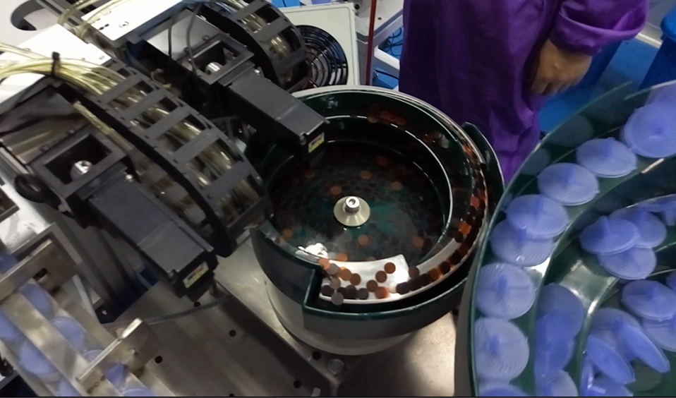 其中分別應(yīng)用了塑料件自動(dòng)理序自動(dòng)上料,在線模切上料,注塑件過盈扣合,及導(dǎo)水殼導(dǎo)水芯自動(dòng)穿插。